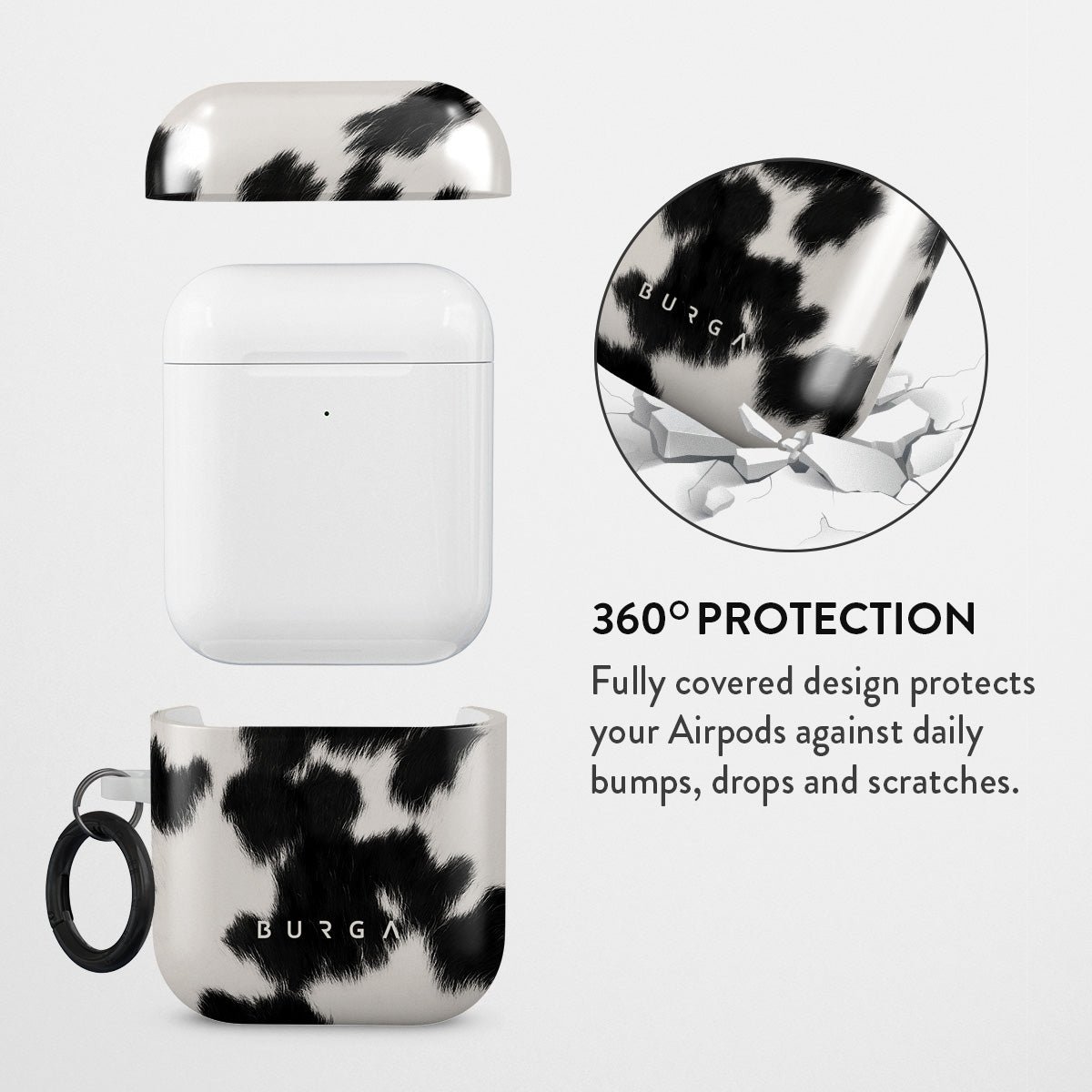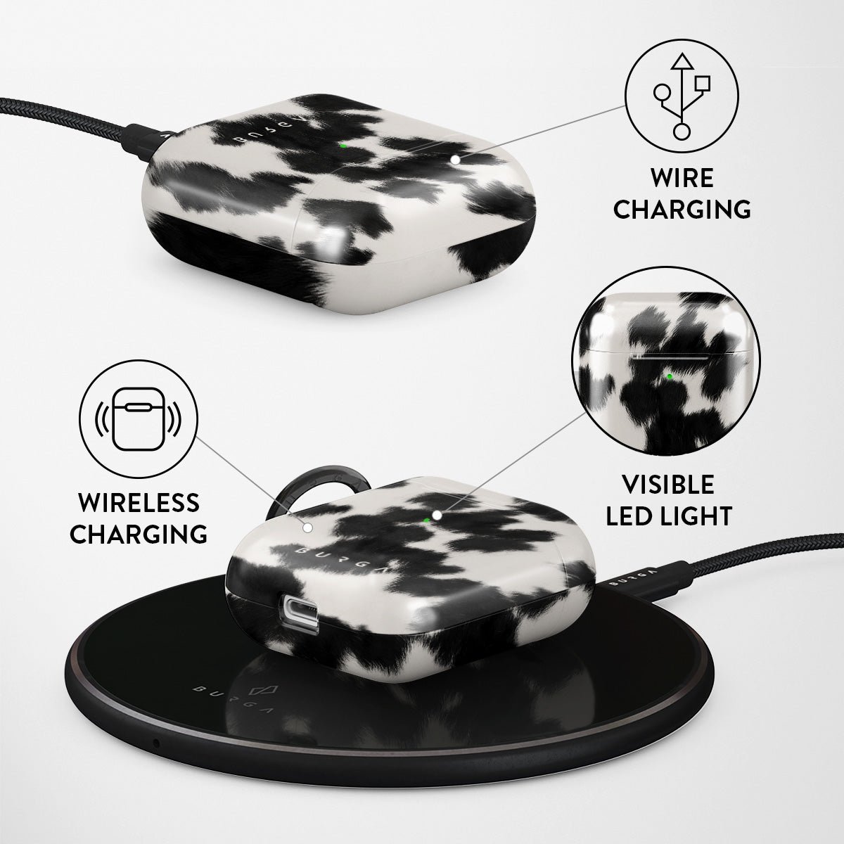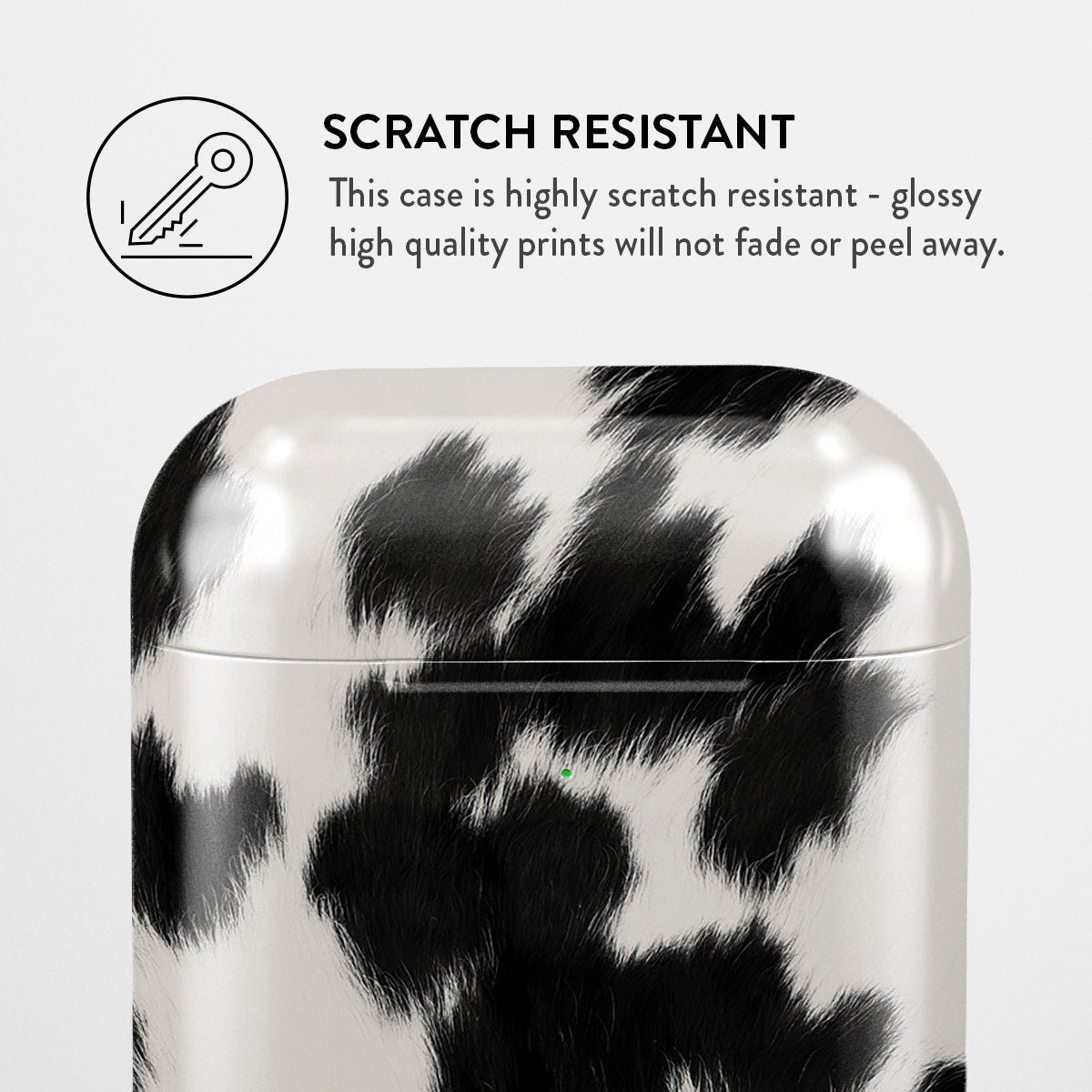 Your Airpods deserves to look cute and stay protected at all times. and our Achromatic Apple Airpod Generation 1 & 2 case cover will help you keep it safe and sound. The cow print in black and white is both daring and classic. making it the perfect addition to your accessory collection.