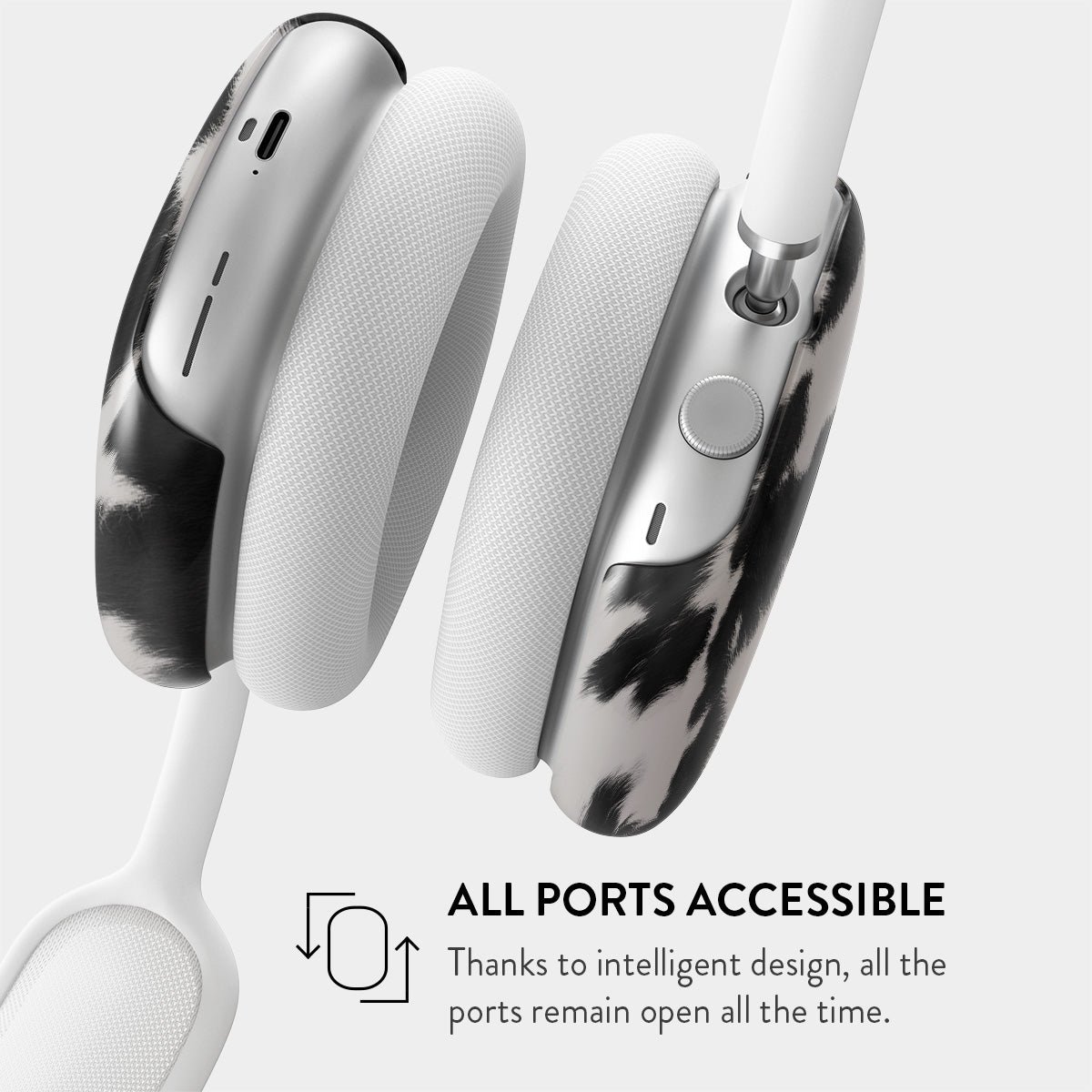 Your Airpods deserves to look cute and stay protected at all times. and our Achromatic Apple Airpod Max Headphones case cover will help you keep it safe and sound. The cow print in black and white is both daring and classic. making it the perfect addition to your accessory collection.
