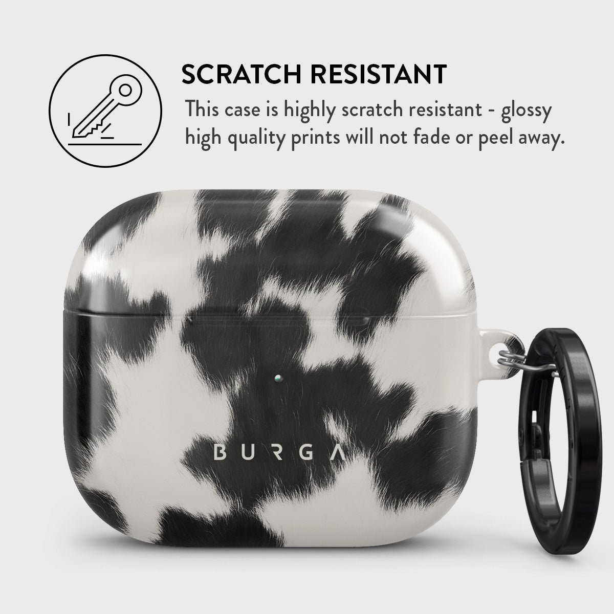 Your Airpods deserves to look cute and stay protected at all times. and our Achromatic Apple Airpods 3 case cover will help you keep it safe and sound. The cow print in black and white is both daring and classic. making it the perfect addition to your accessory collection.