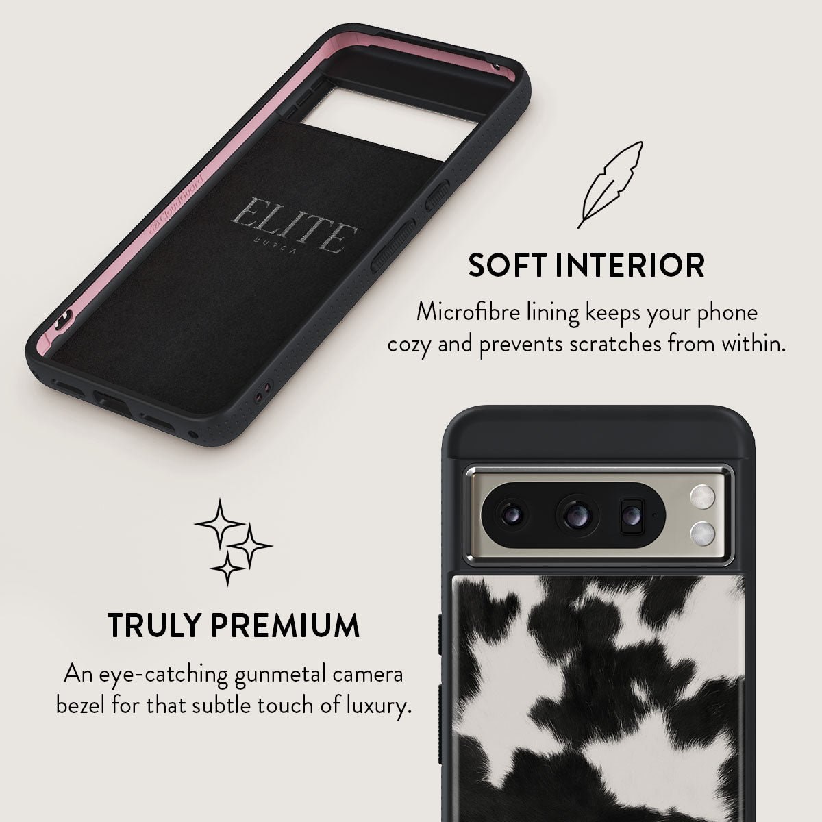 Your phone deserves to look cute and stay protected at all times. and our Achromatic Google Pixel 8 phone case will help you keep it safe and sound. The cow print in black and white is both daring and classic. making it the perfect addition to your accessory collection.