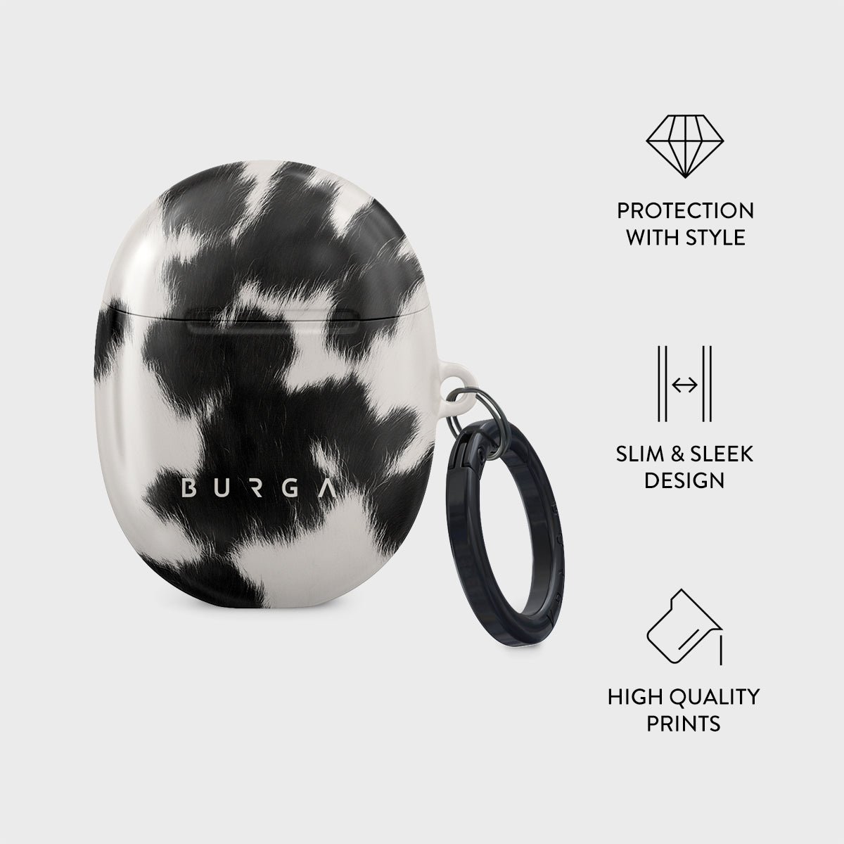 Your Google Pixel Buds deserves to look cute and stay protected at all times. and our Achromatic Google Pixel Buds Pro case cover will help you keep it safe and sound. The cow print in black and white is both daring and classic. making it the perfect addition to your accessory collection.